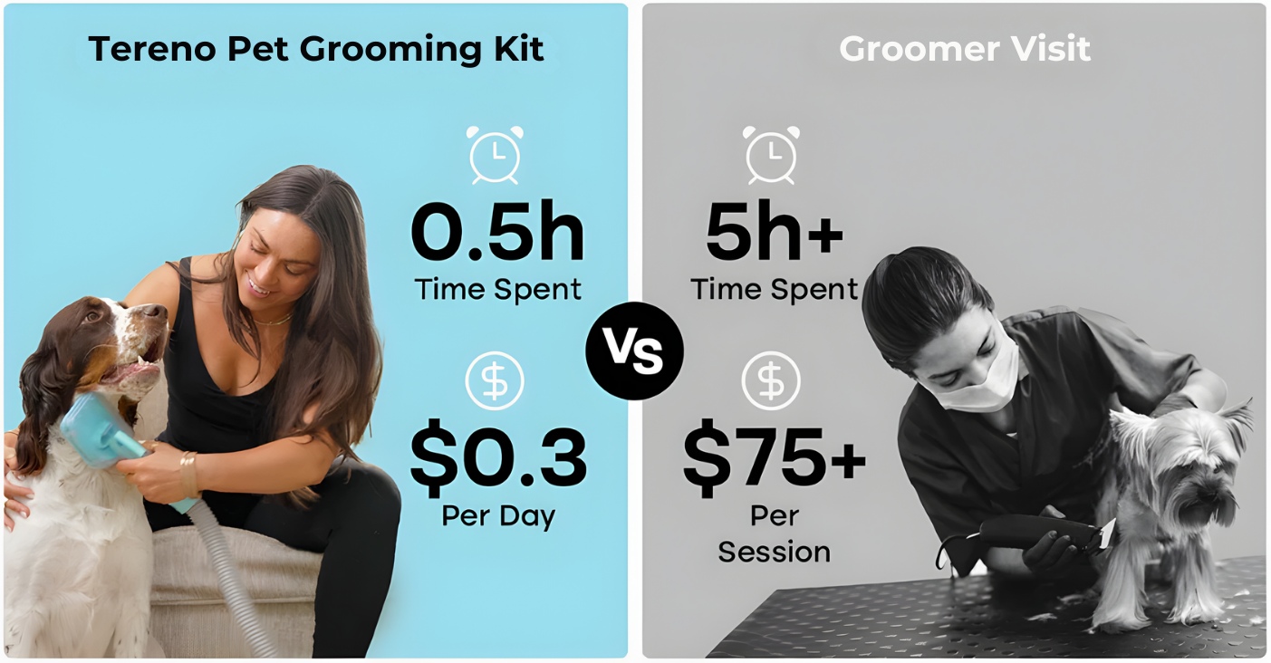 Grooming shouldn’t cost hours of your day or hundreds each month. With the Tereno™ Calm Grooming Bundle, you can achieve the same professional results right at home, without the stress or expense of groomer visits.